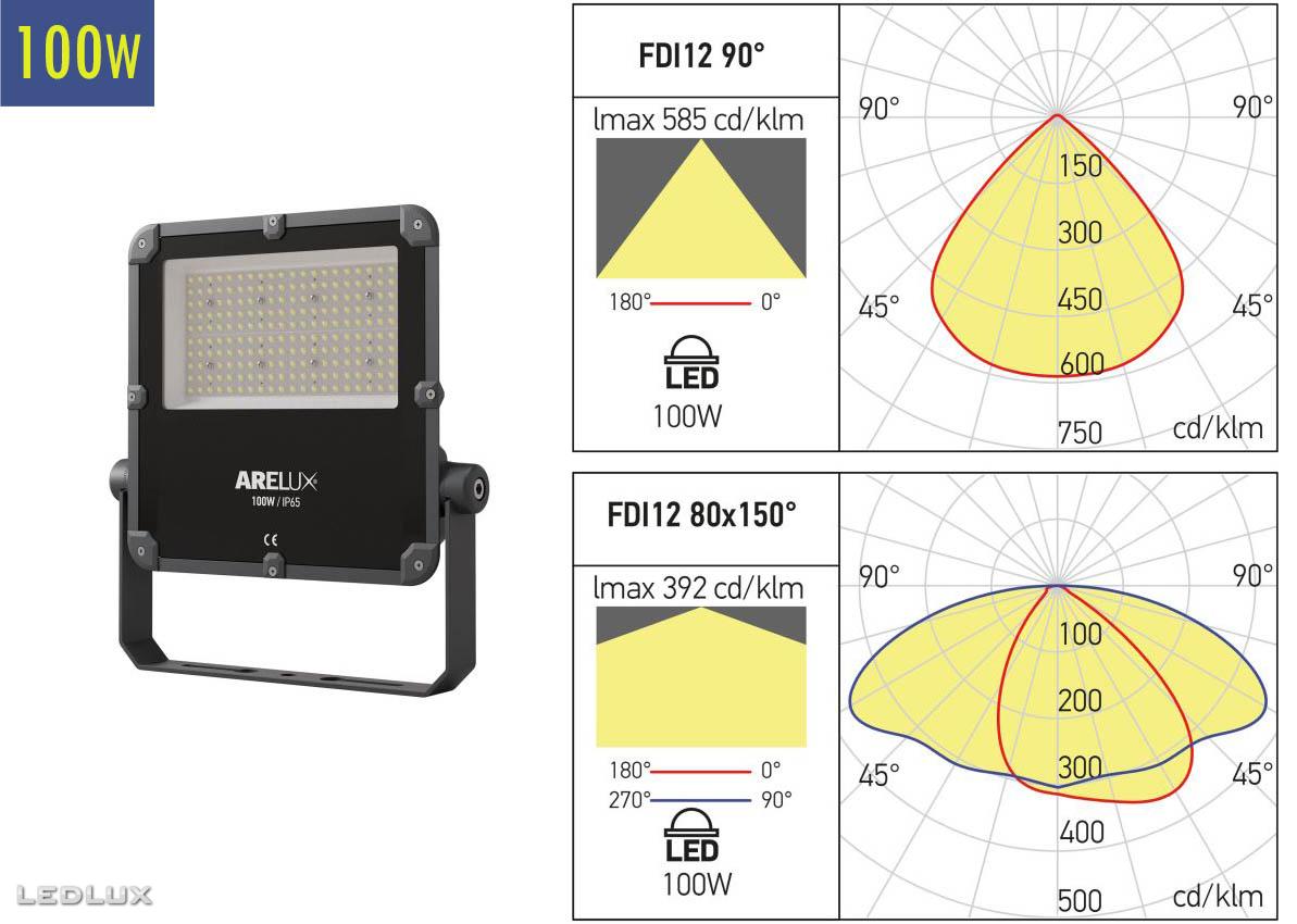 - 80°x150° 3000K - 11844lm / 4000K - 12721lm / 6000K - 12833lm