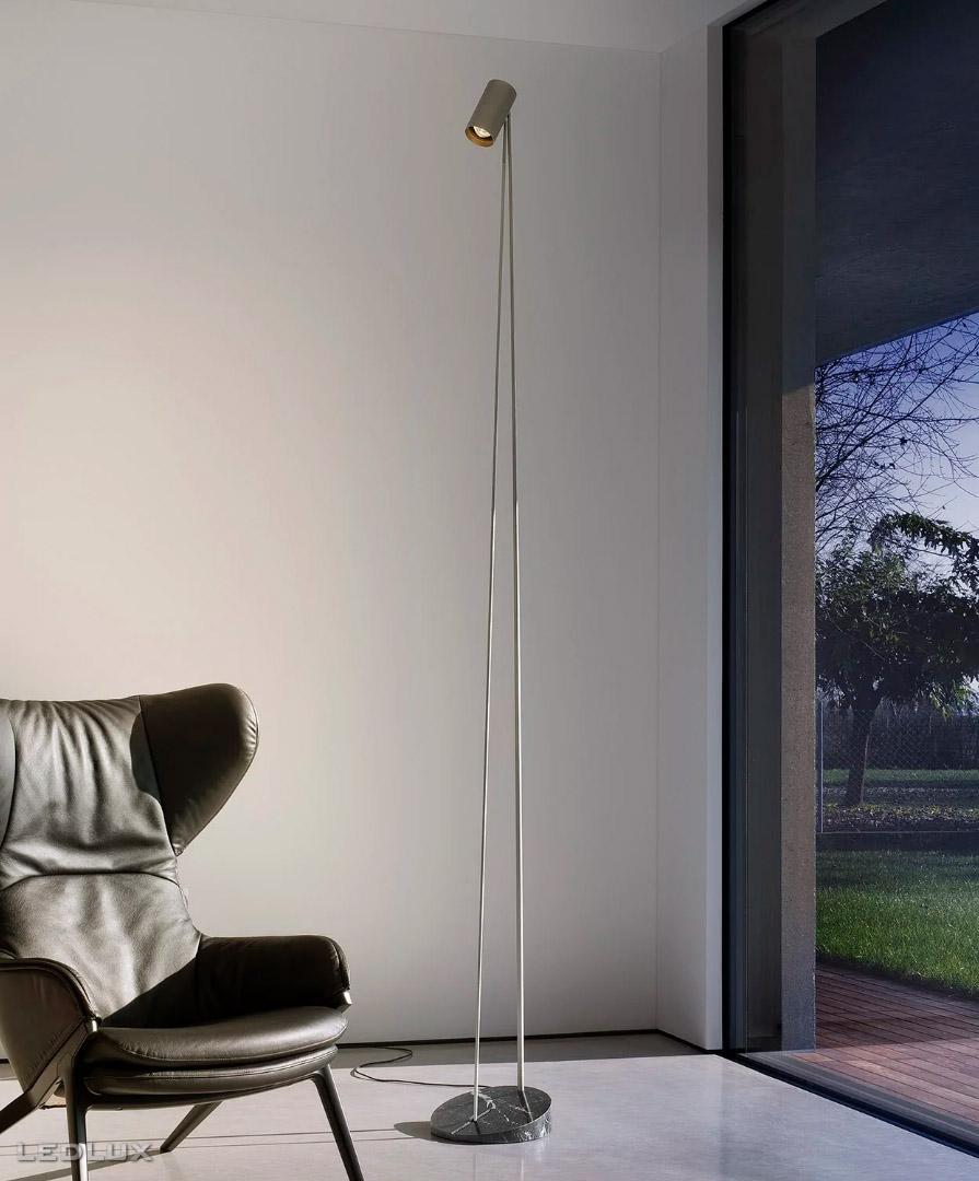 Minimalistická interiérová LED stojanová lampa s mramorovým podstavcom. Lampa je s možnosťou nastavenia sklonu tienidla.
